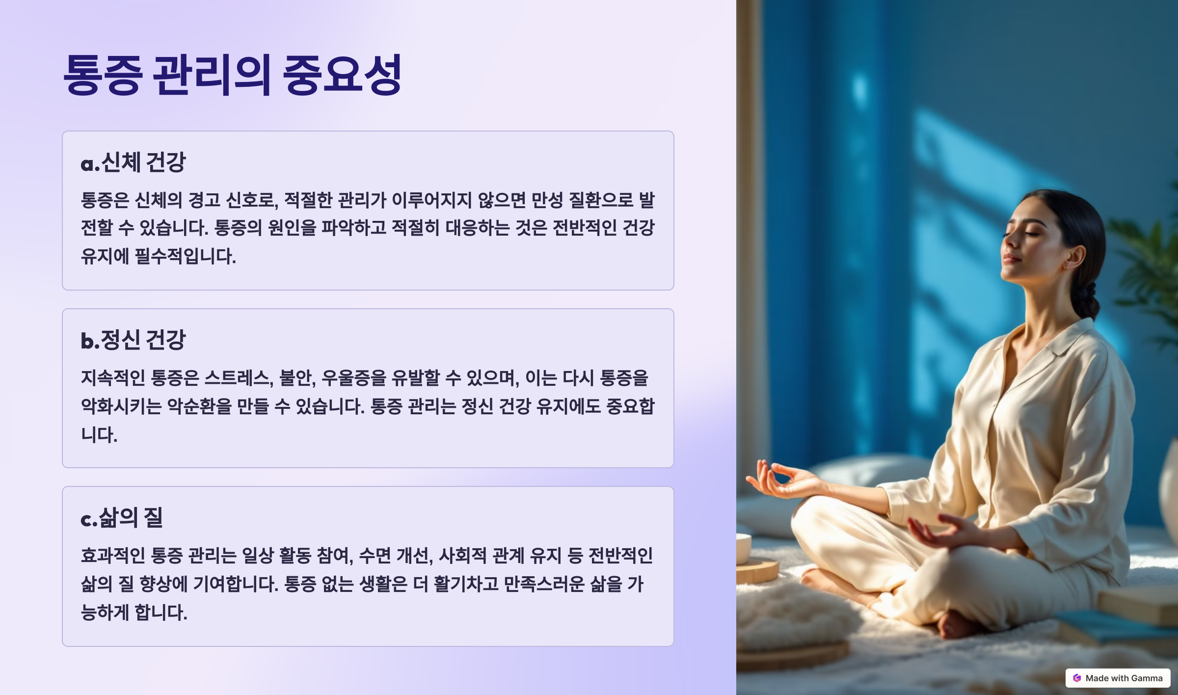 우리 몸은 다양한 부위에서 통증을 경험할 수 있으며, 이는 여러 가지 원인에 의해 발생한다. 신체 부위별 통증의 원인을 이해하고 적절한 대처 방법을 찾는 것은 건강한 생활을 유지하는 데 매우 중요하다. 본 글에서는 신체 부위별로 발생하는 통증의 원인, 생활에 미치는 영향, 주의할 점, 자가 진단법, 그리고 처방법을 상세히 설명하고자 한다.