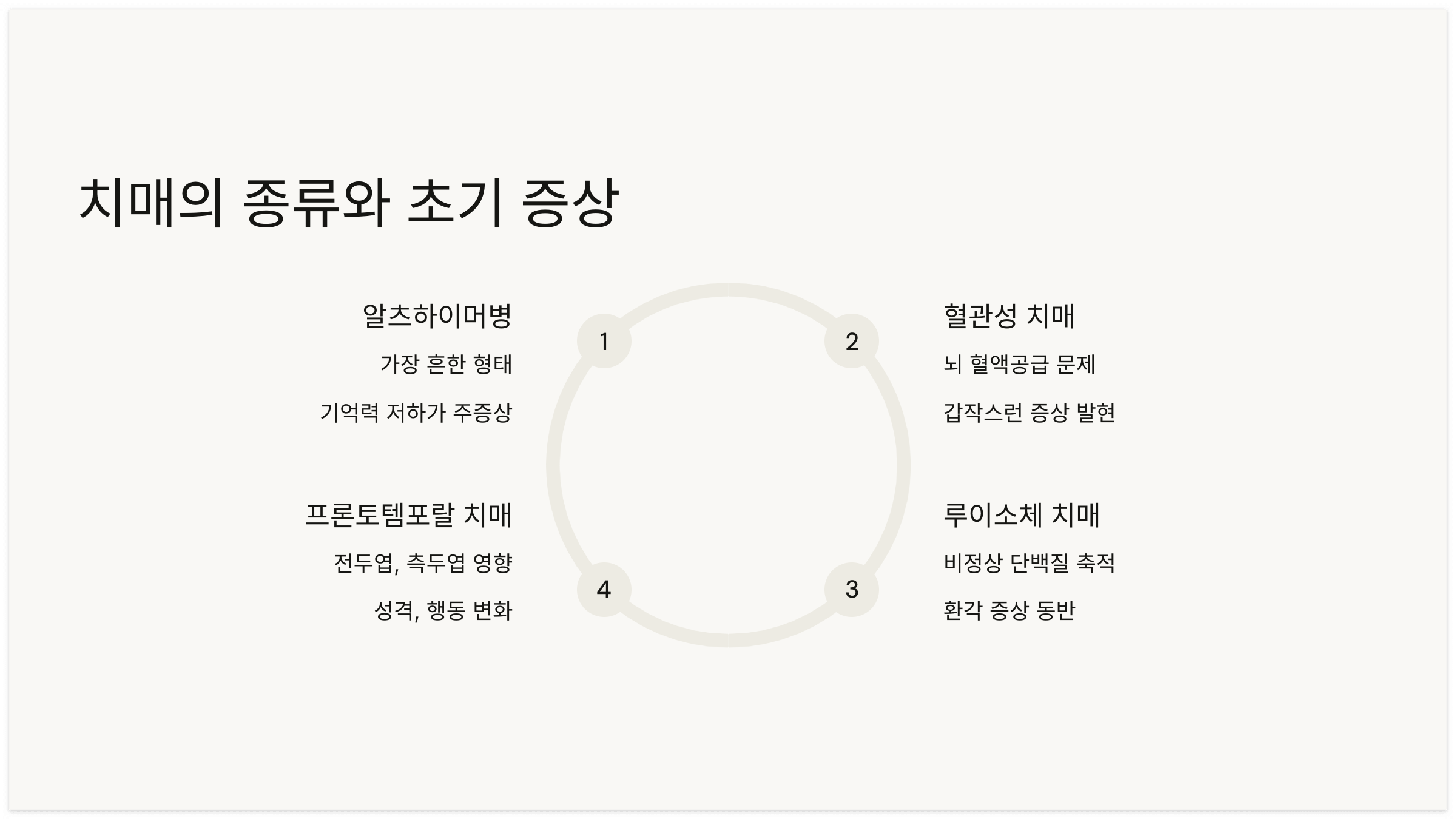 치매는 단순한 기억력 감퇴가 아닌, 전반적인 뇌의 기능 저하로 인한 일상 생활의 어려움을 초래하는 질병입니다.